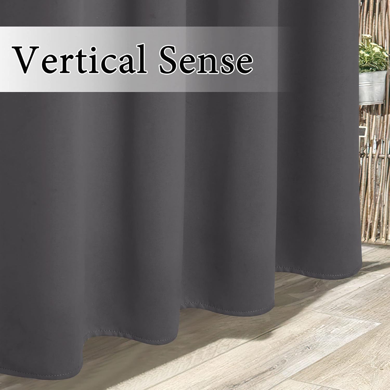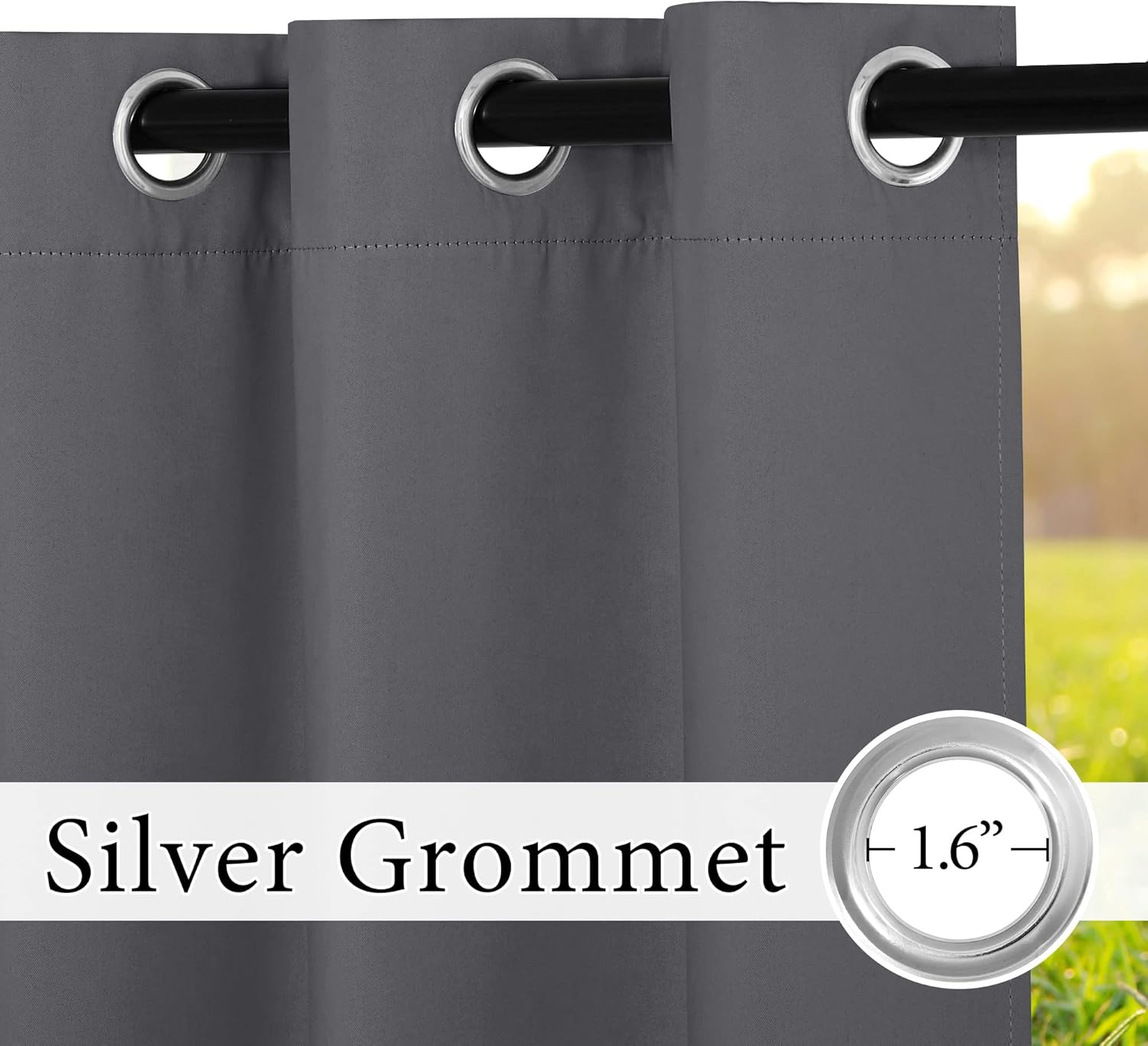 Each curtain panel is equipped with rust-proof stainless steel grommets, suitable for outdoor use. The inner diameter of each grommet is 1.6 inches, compatible with most curtain rods.