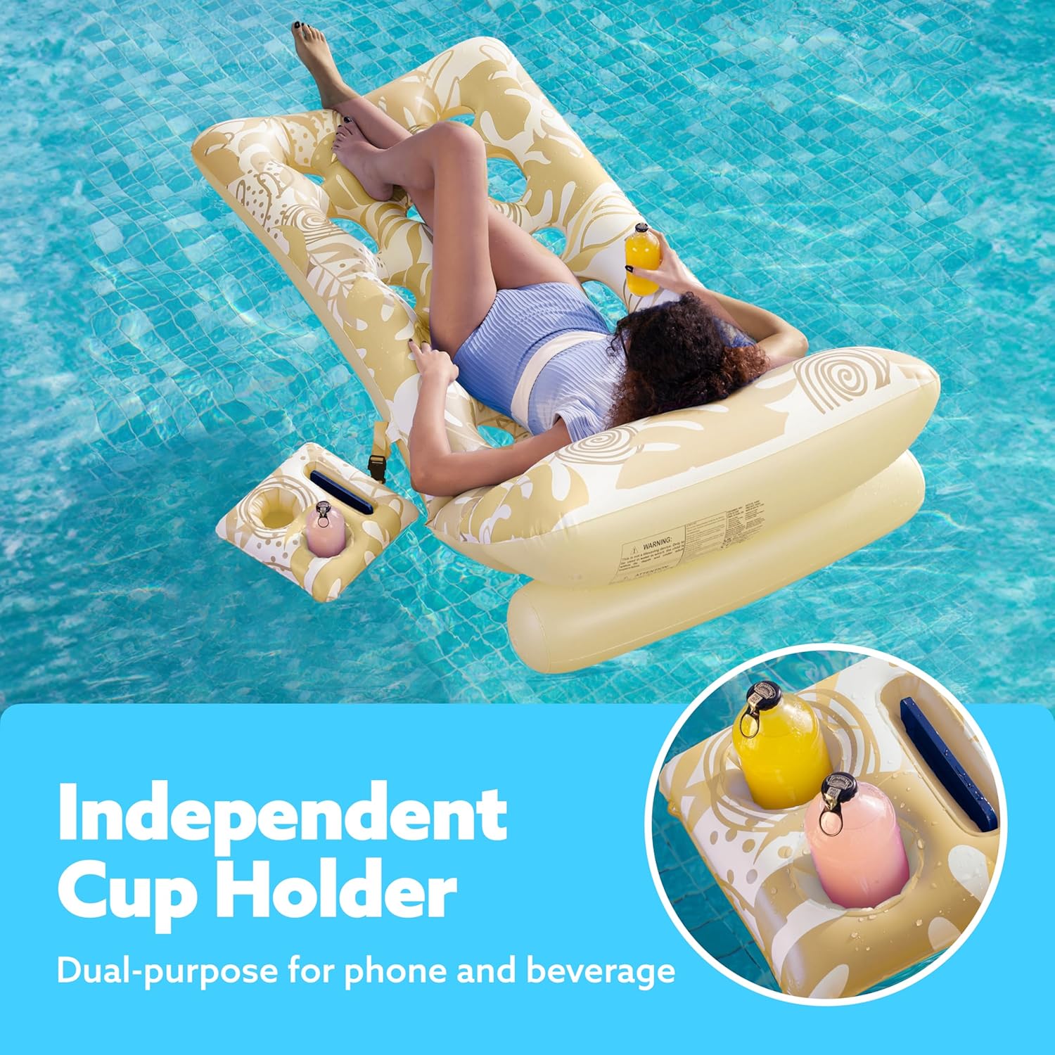 9 reviews for SLOOSH Adjustable Backrest Pool Floats – Tropical Leaves Pool Lounger Floaties Adults with Cup Holders, Inflatable Tanning Float Rafts Chair Beach Lake Floating Above Water Keep Cool (Champagne)