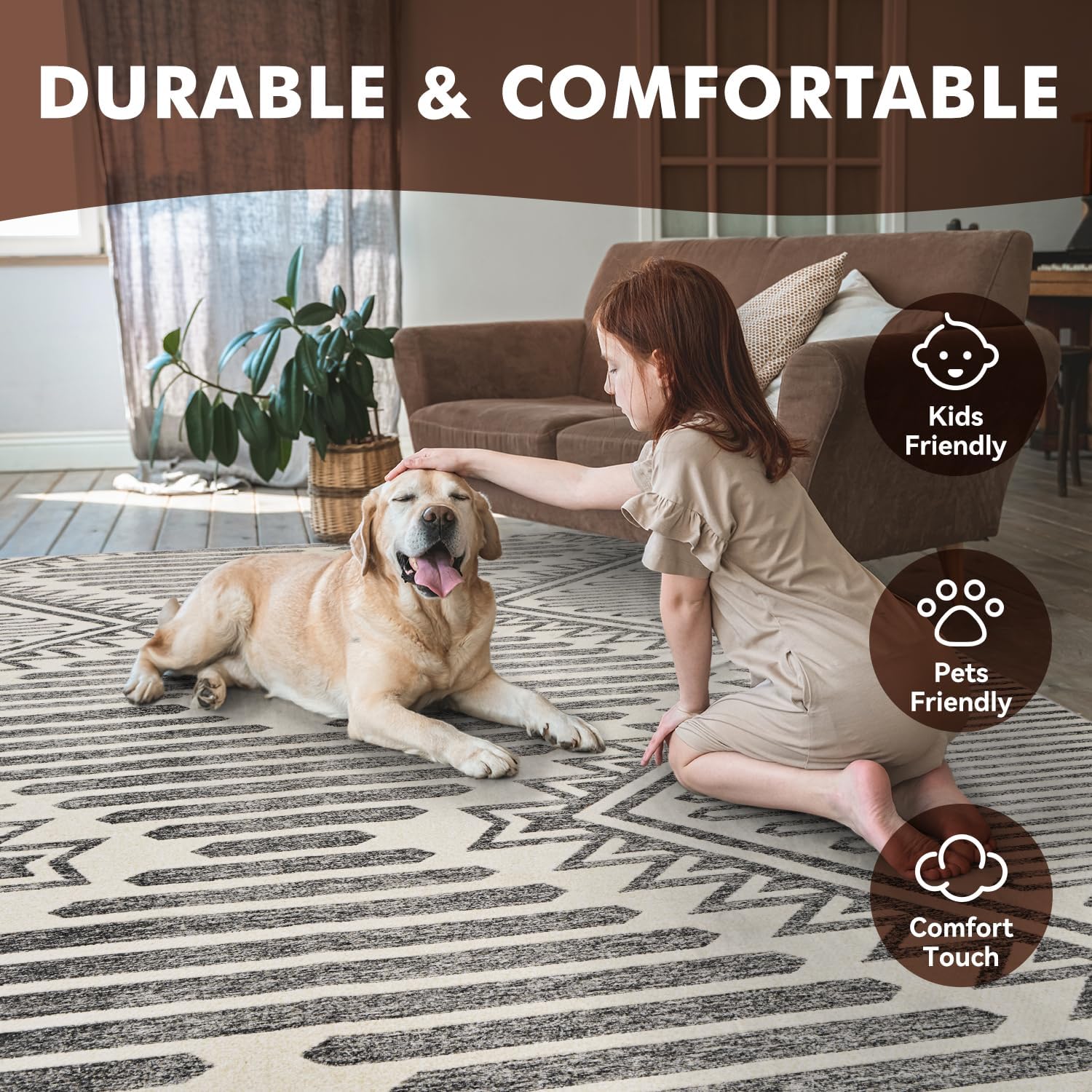 Cozy & Comfortable: This neutral rug perfectly balances style and coziness. Unlike typical jacquard rugs, where only the raised parts are soft, our upgraded technique enhances both comfort and durability. The raised sections are more comfortable, and the recessed areas use a unique weaving method for increased wear resistance and comfort.