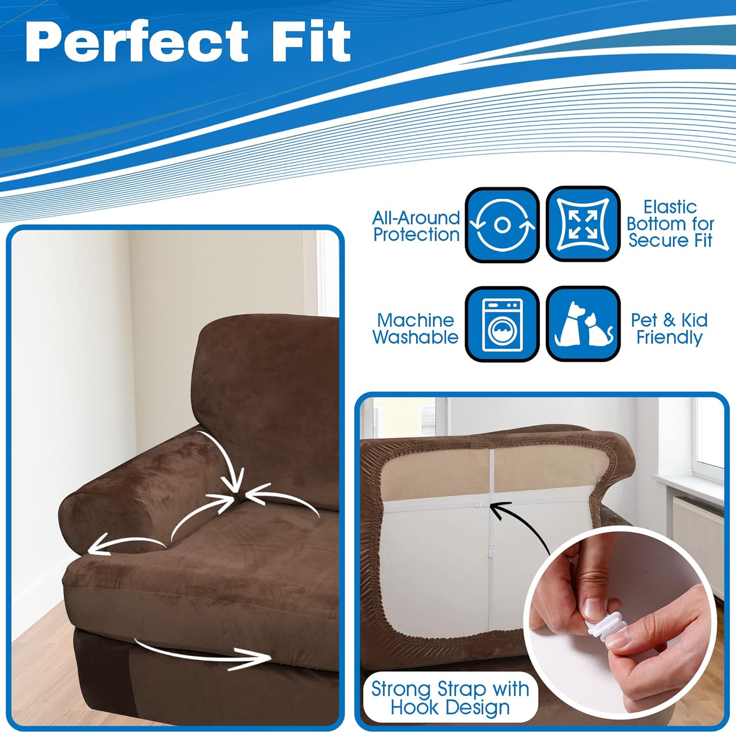 Most similar cushion and sofa covers on Amazon don’t have the design for the style of sofa that I have and so don’t fit. This product fits great and looks and feels great too. After installing it my living room looks completely different. As a pet owner this will help protect my furniture and keep my fur babies close to me. Washing is straightforward toss it on gentle with cold water and hang to dry. The product seems to dry fairly quickly this way.