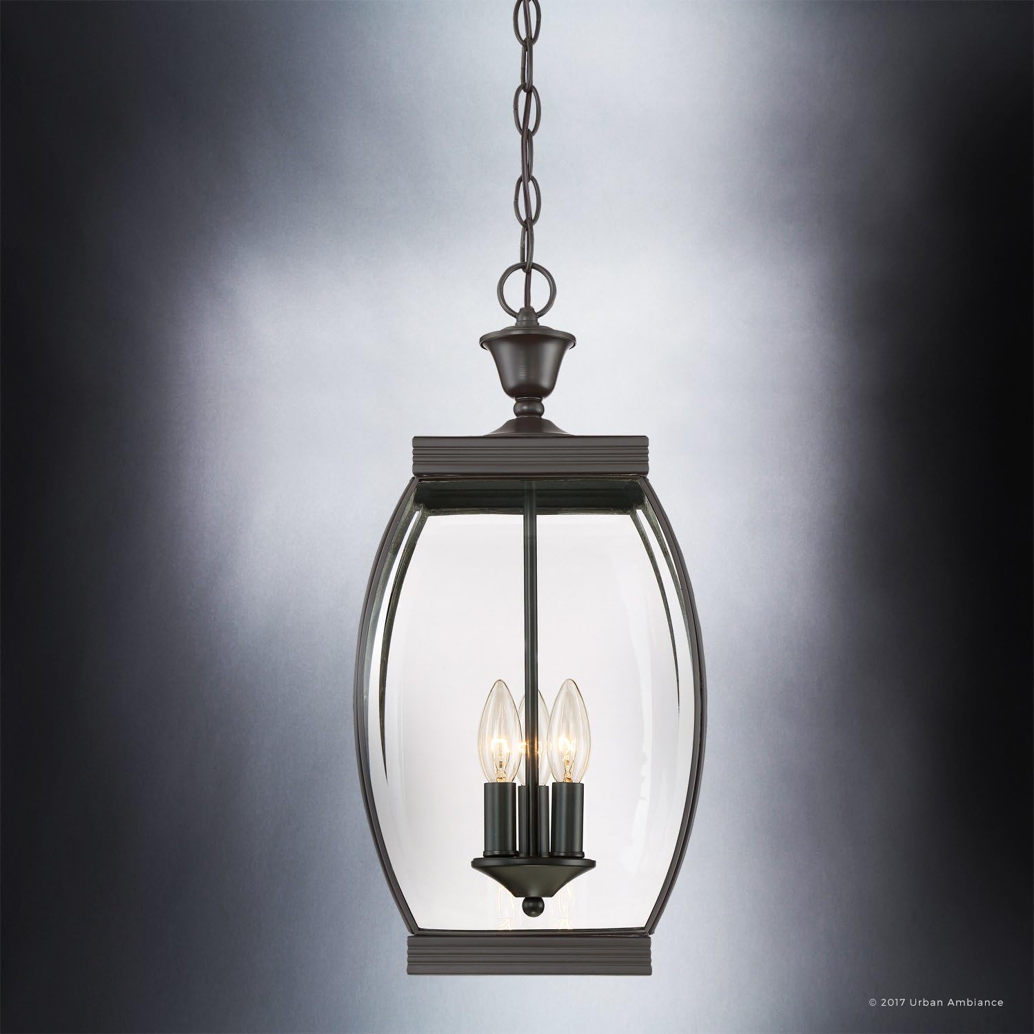 Urban Ambiance Luxury Colonial Outdoor Pendant Light, Large Size: 20.5″ H x 9″ W, with Transitional Style Elements, Bowed Design, Gorgeous Dark Medieval Bronze Finish and Beveled Glass, UQL1176