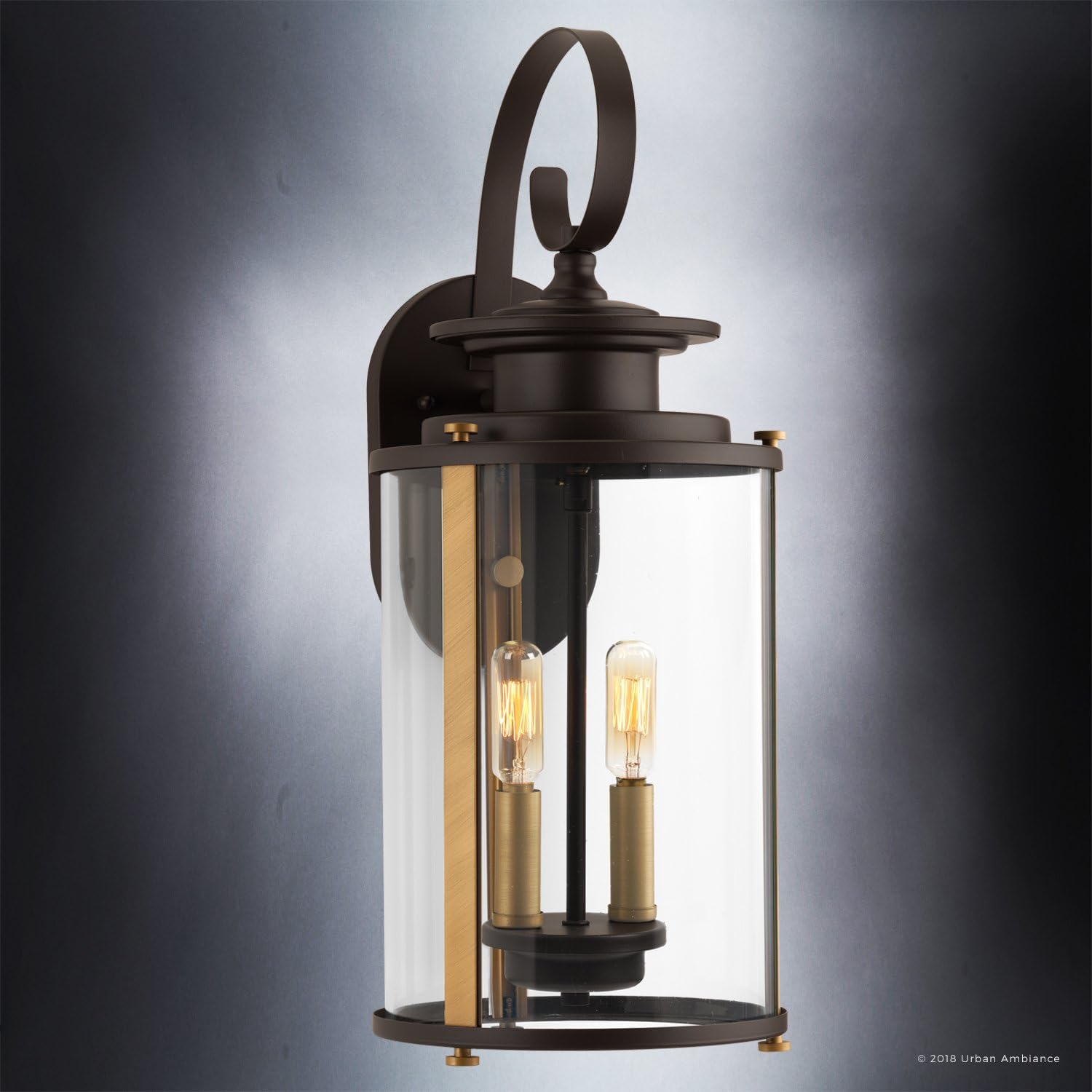 Urban Ambiance Luxury Rustic Outdoor Wall Light, Medium Size: 19.25″ H x 8″ W, with Colonial Style Elements, Olde Bronze Finish and Clear Shade, UHP1120 from The Plymouth Collection