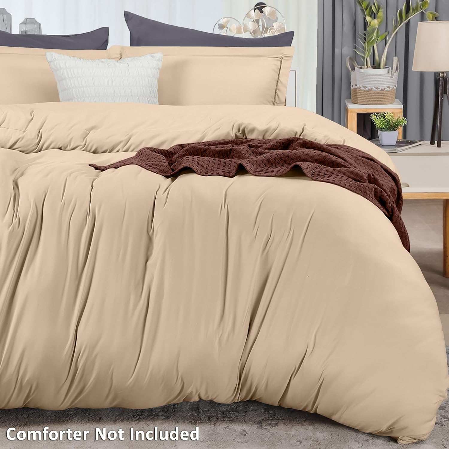 Utopia Bedding Duvet Cover Queen Size – 3 Piece with Zipper Closure – 1 Comforter Cover 90X90 Inches & 2 Pillow Shams 20X26 Inches (Beige) Comforter Not Included