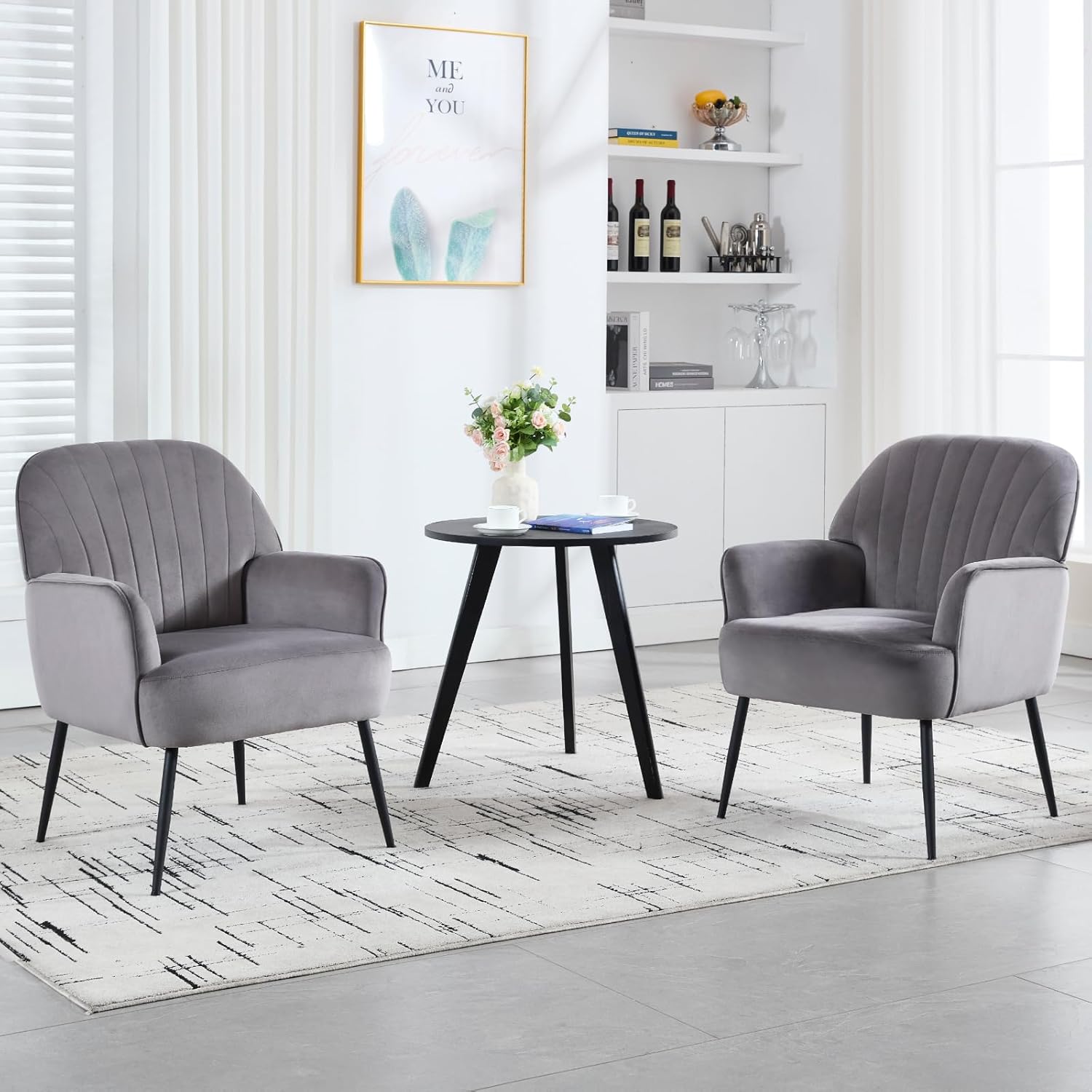 【Shell-shaped Ergonomic Design】Elevate your living space with this modern gray accent chair. Its stylish design and exquisite velvet fabric add a touch of contemporary elegance to any room. The padded armrests provide support for your arms and relaxation for your shoulders, while the gently curved backrest relaxes back muscles and relieves fatigue