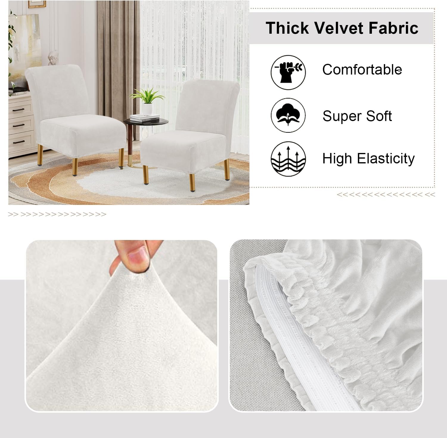 8 reviews for Velvet Armless Accent Chair Covers Luxury Thick Velvet Chair Slipcovers, Removable Furniture Protector for Living Dining Room Hotel, Machine Washable, Off White