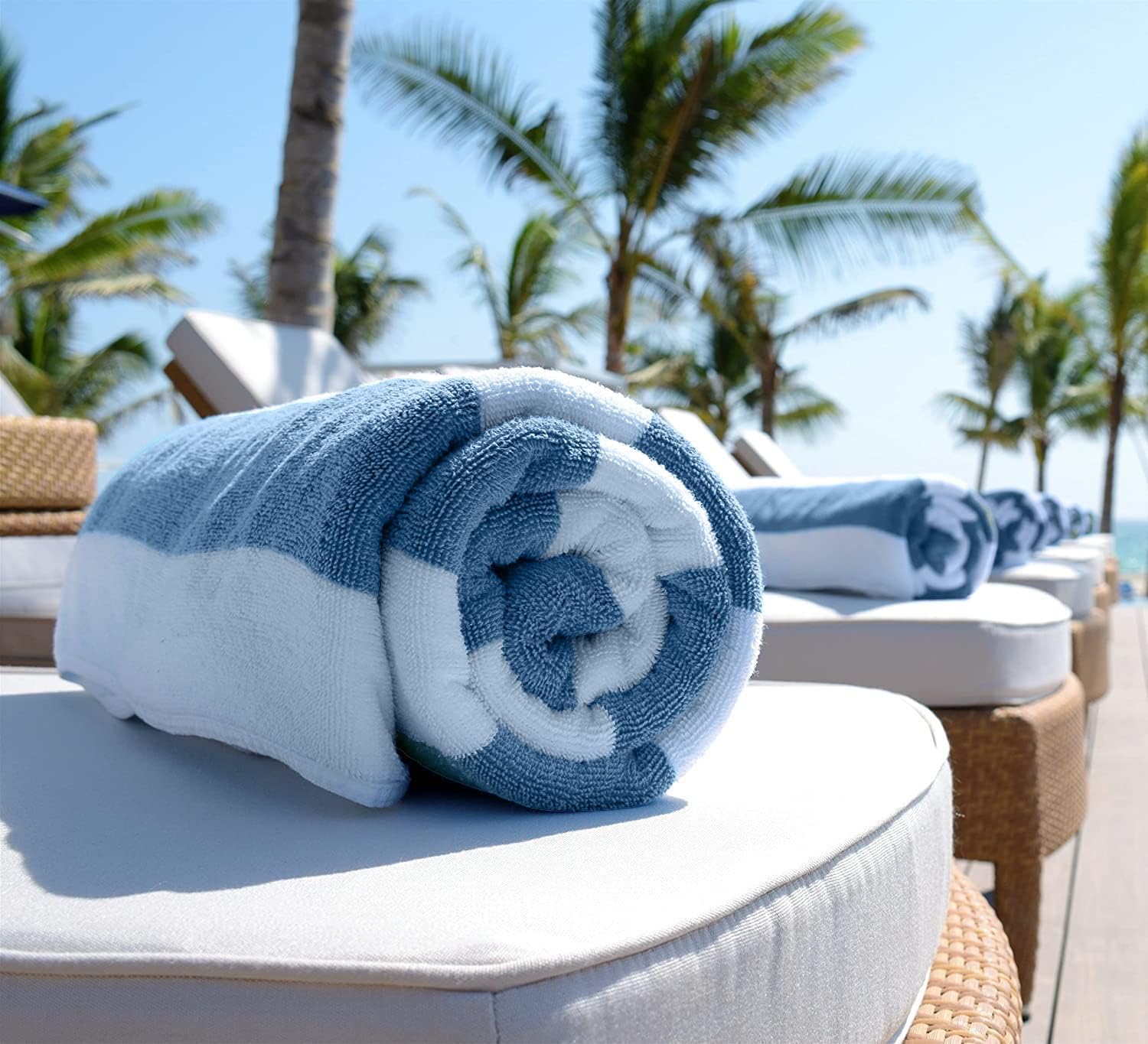 EXTRA-LARGE BATH TOWELS. Prepare for ultimate relaxation at the beach or in your cool cabana with these oversized bath towels. Measuring a perfect size of 35″x70″, they provide ample coverage to quickly wrap yourself up after a day of water fun. Lay them down on the sand or pack them in your suitcase without taking up too much space.