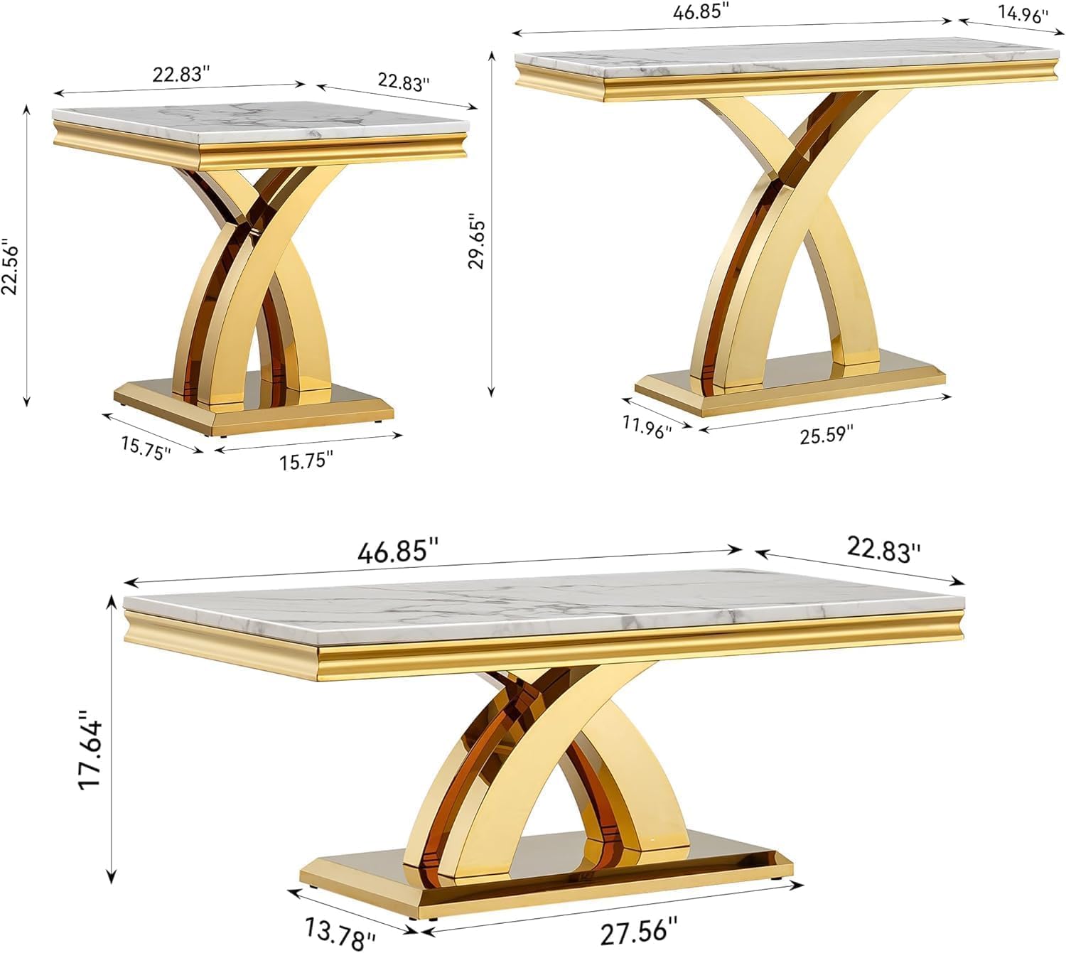 【3 Piece Coffee Table Set】 This KUVADAZ white gold living room set includes 1 Coffee Table and 2 End Tables. The contemporary style set can fit well with a variety of decoration styles, making the living room, bedroom, guest room, reception room or office conference room more comfortable and pleasant