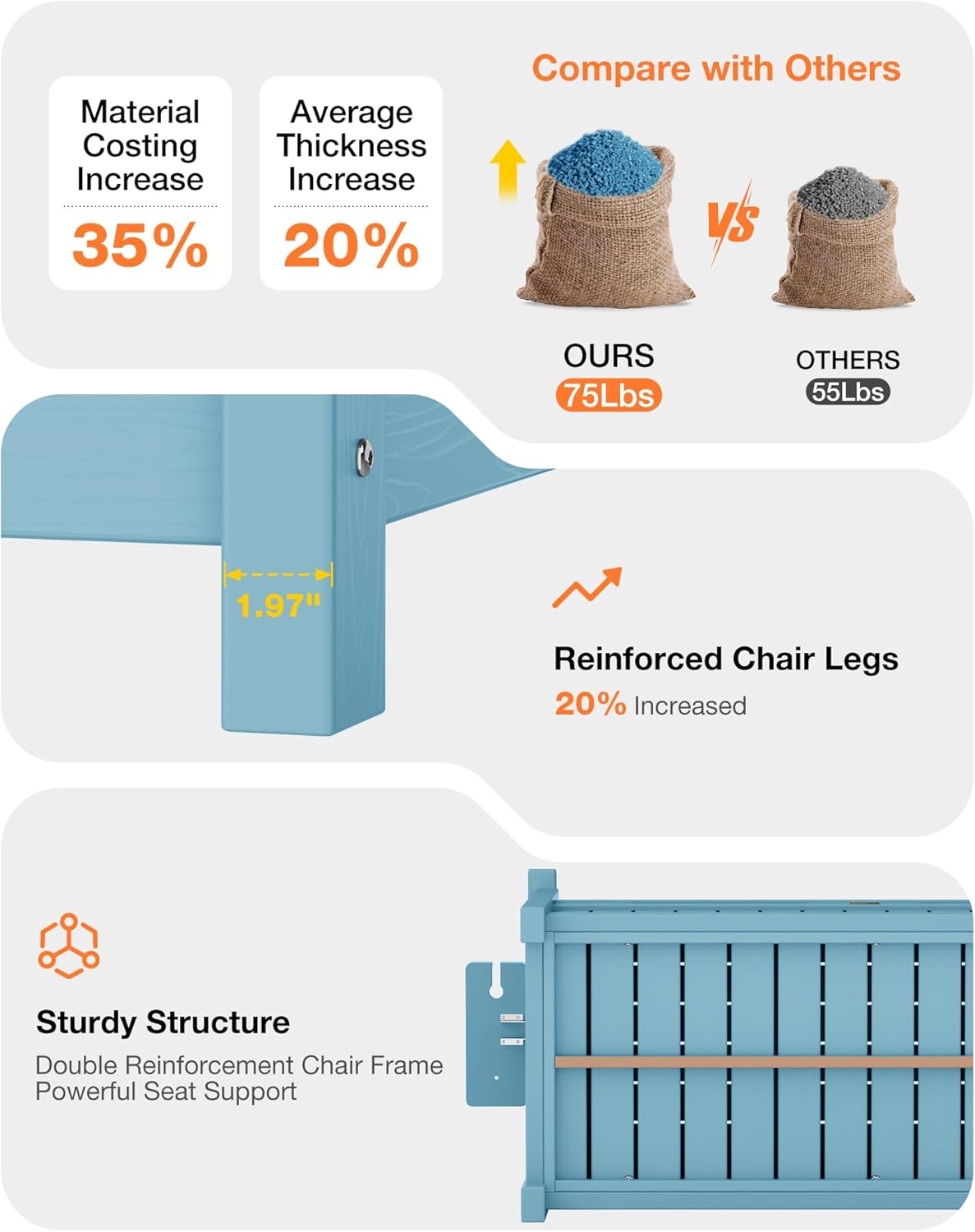 Comfortable Seating Experience: The 96° sloped high backrest releases spinal pressure, relieves fatigue, and enhances comfort. The wide armrests, sturdy legs, and double-reinforcement garden benches frames are more stable and won’t shake, providing a more comfortable Experience.