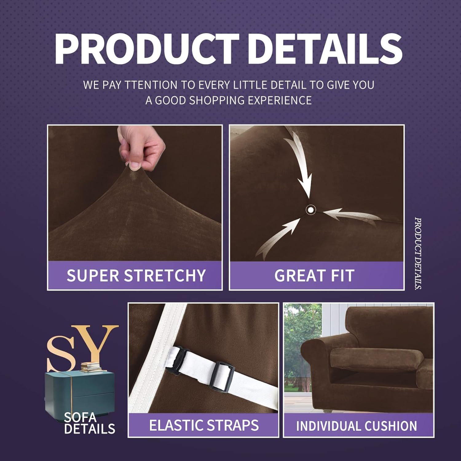 13 reviews for ZNSAYOTX Luxury Velvet Couch Cover 4 Piece (72″-92″) Stretch Sofa Covers for 3 Cushion Couch Thick Soft Sofa Slipcover with Non Slip Strap, Dog Pet Friendly Nice Furniture Protector (Dark Coffee)