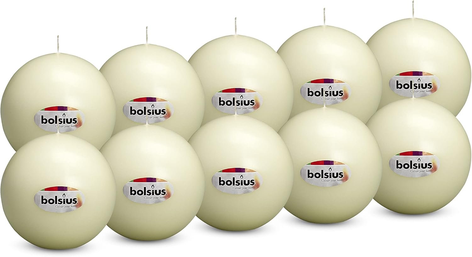 Bolsius 10 Count Ivory Ball Candles – 2.75 Inches Unscented Candle Set – Premium European Quality – Dripless and Smokeless Clean Burning Dinner Candle – Great for Wedding, Party, and Special Occasion
