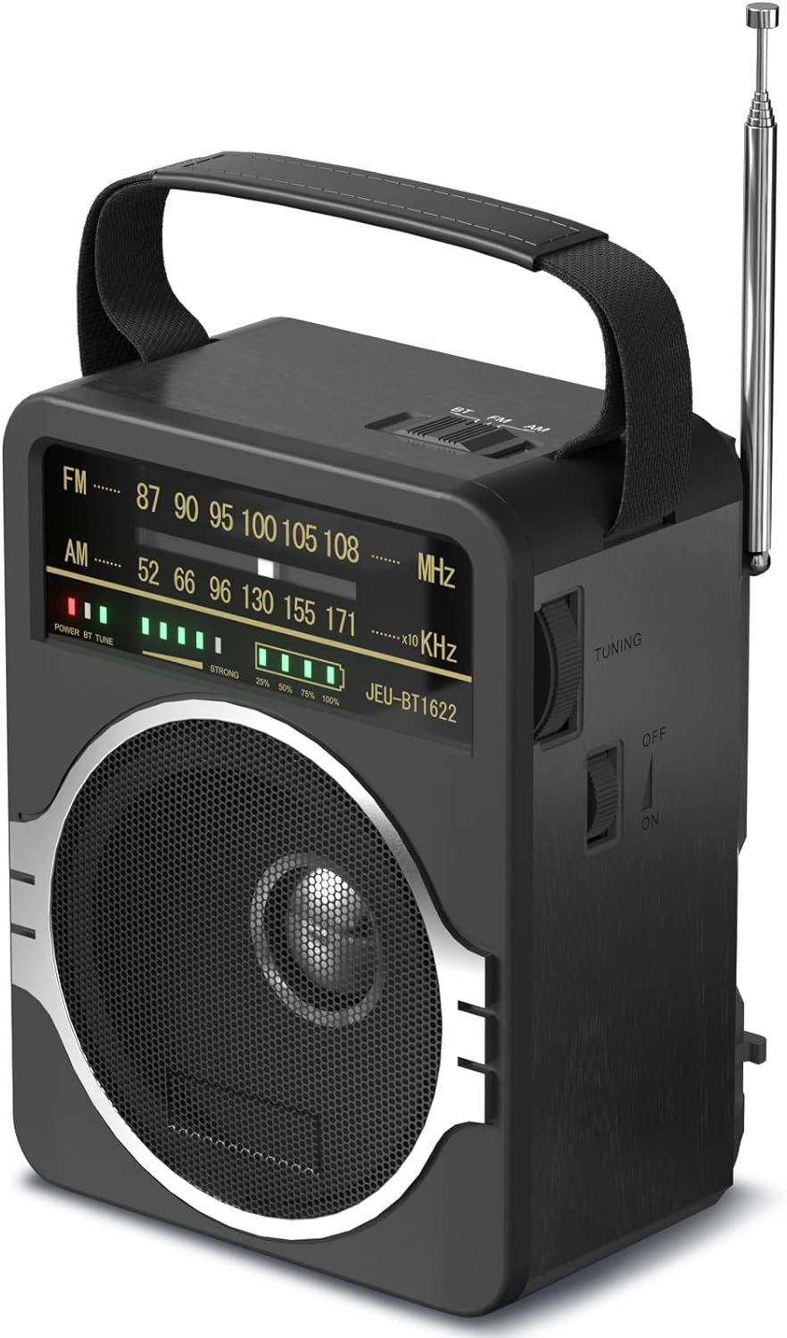 Portable AM FM Radio, Bluetooth 5.0 Radios 5 Watts Loud Speaker,FM Radio Built-in Rechargeable Battery/DC D*4 Cell Battery Operated & AC Power Plug in Wall Black