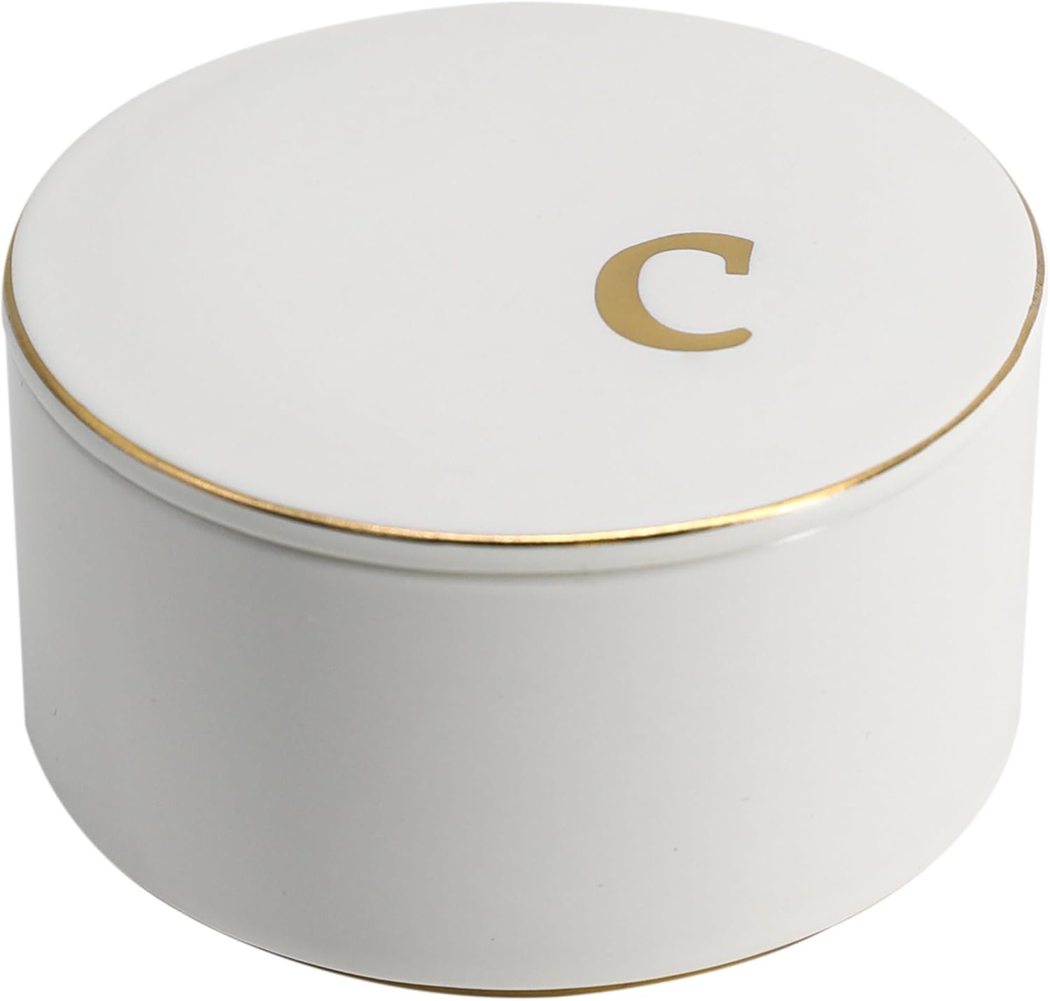 COLLECTIVE HOME – Ceramic Jewelry Box, Elegant Embossed Jewelry Holder, Trinket Organizer with Gold Monogram Lid, Storage for Ring Necklace Bracelet Earrings, Rings and Accessories (c)