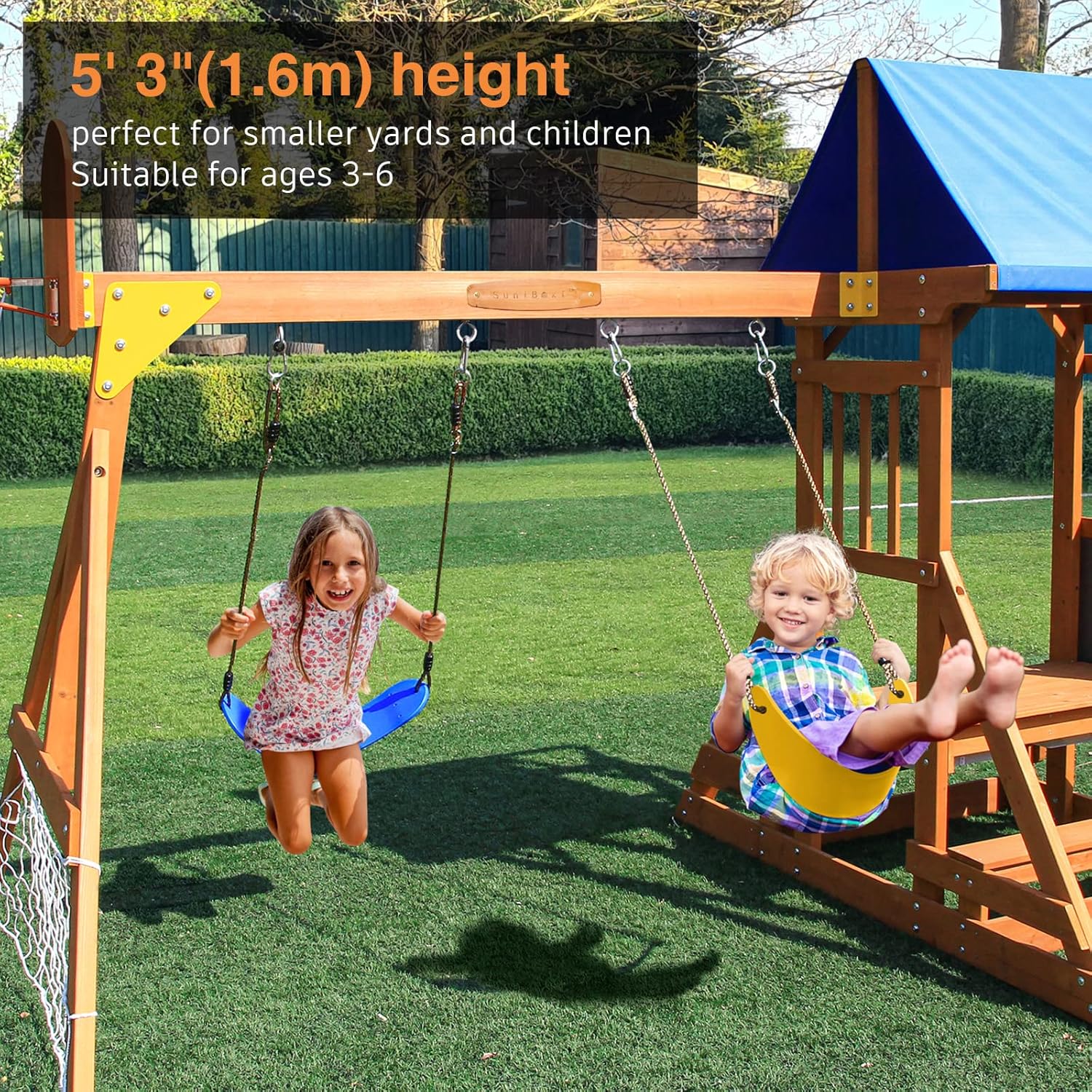【Swing Sets for Backyard for Kids 3-6】Designed for outdoor playset, it’s no less fun than a big swing. The swing height of 1.6 meters is safer and more suitable for younger children. This swing sets is ideal for a beginner swing set,best suited for 3-6 years old. It can be used in a small space of 26x20ft.
