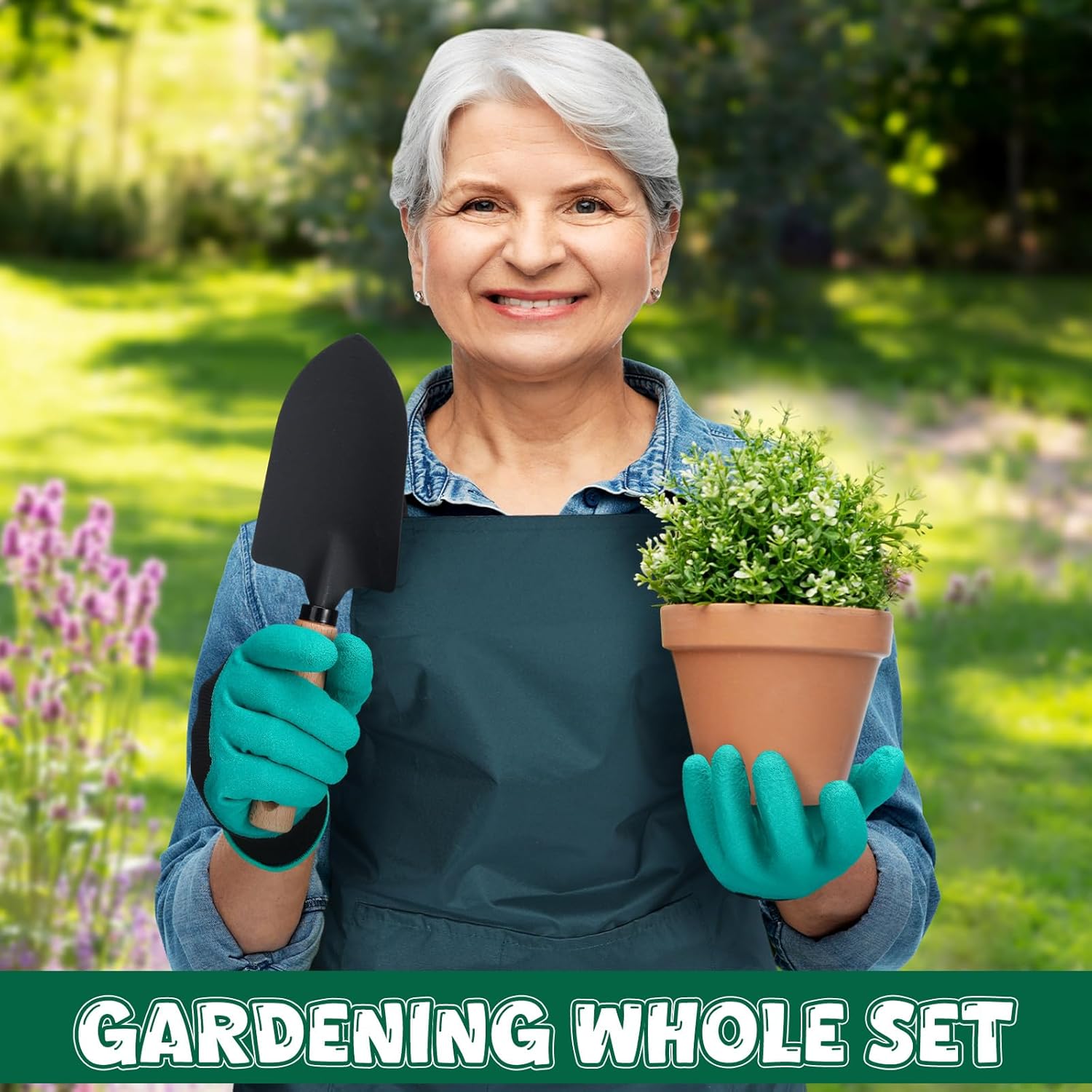 Protective Tools: garden aprons and non slip gloves are not just accessories, they are essential protection for a pleasant gardening experience; The apron is with pockets so you can put any plant tools inside; Non slip latex gloves prevent her hands from dirt and allow her to indulge in the joys of gardening without any worries